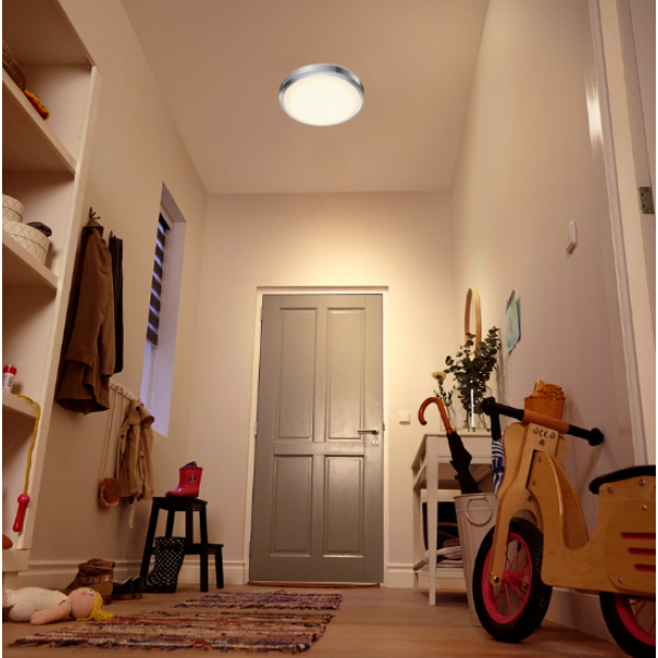 Philips Doris CL257 LED Round IP44 Ceiling Light Chrome 17W 1500lm Warm White