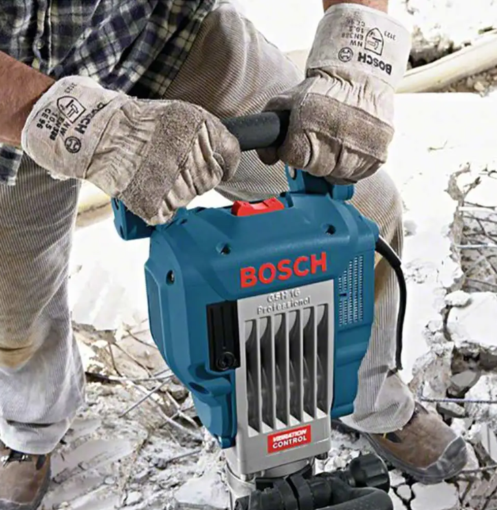 The GSH 16-30 Professional with Vibration Control and a 30-mm bit holder is the universal performer in Bosch’s corded breaker hammer range. Its remarkably powerful motor enables the delivery of an outstanding 41 J of impact energy, providing incredibly high material removal rates. This breaker is also built for durability, featuring exceptionally robust metal components. Furthermore, its easy manoeuvrability and low vibration enable perfect handling.