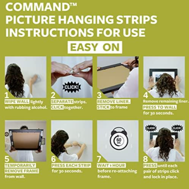 DAMAGE-FREE DECORATING- Say goodbye to holes marks or sticky residue on your walls Command Picture Hanging Strips by 3M are easy to use and help keep your walls looking beautiful