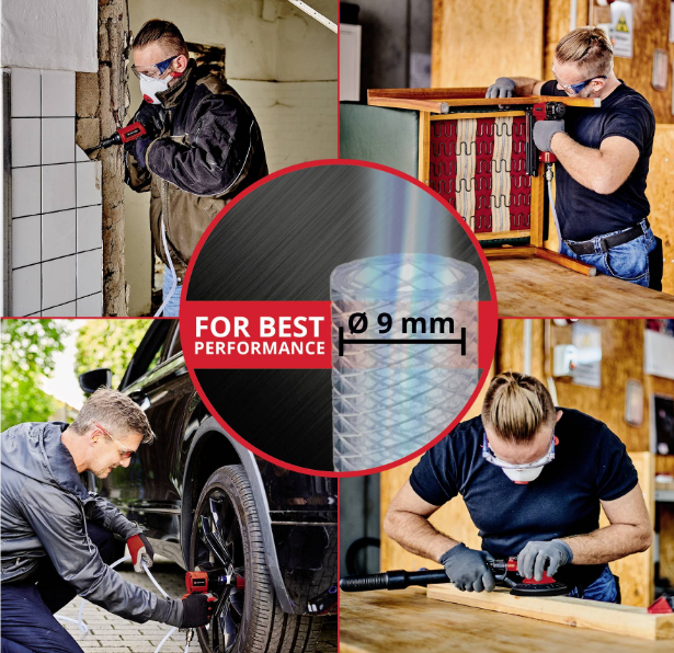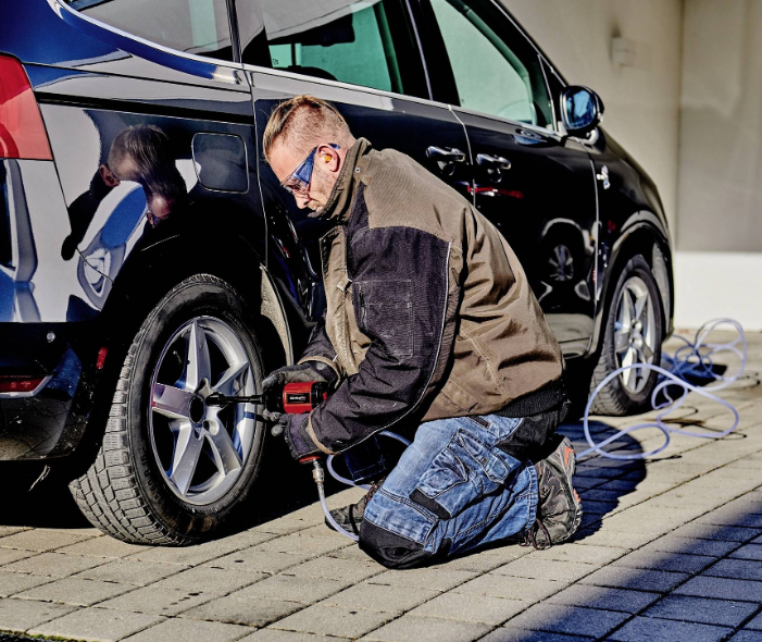 The Einhell compressed air impact driver TC-PW 610 takes on the work in the home, workshop and garage powerfully. Thanks to its high performance, it is also ideally suited for demanding tasks. The robust impact driver has a maximum torque of 610 Nm. The non-slip rubberized grip ensures safe and pleasant working in any situation. Equipped with left (single-stage) and right-handed rotation (three-stage), the compressed-air impact driver presents itself to a variety of DIY and do-it-yourself applications. It offers best performance from an inner diameter of 9 millimeters. The maximum working pressure is 6.3 bar, the maximum thread size is 19 millimeters. The equipment includes 10 sockets in the sizes 8/10/11/13/17/19/21/22/24/27 millimeters as well as 1x oil bottles and 1x plug nipple. An extension of 125 mm is also available. The compressed air impact driver TC-PW 610 from Einhell is immediately ready for use. Supplied in a practical transport and storage case.