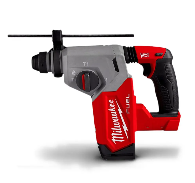 The MILWAUKEE® M18 FUEL™ 26 mm SDS Plus Rotary Hammer includes AUTOSTOP™ Kickback Control for maximum control and enhanced safety, with the tool sensing a bind-up situation when users are drilling in rebar or hard aggregate and stopping over-rotation, without the need for the user to release the trigger, indicated by the AUTOSTOP™ Indicator LED. The Anti-Vibration System (AVS) minimizes vibration for maximum comfort when in use for extended periods. A Dedicated Dust Extractor (M18FDEX) is also available (sold separately), which once connected is powered by the Rotary Hammer.