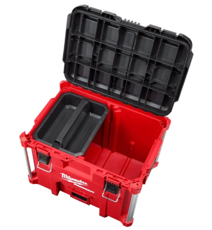 The PACKOUT™ XL Tool Box is constructed with impact-resistant polymers and metal reinforced corners to withstand harsh jobsite conditions. The tool storage solution connects with all other PACKOUT™ system components via integrated locking cleats and has a 45kg weight capacity. An IP65 rated weather seal protects tools and accessories from rain and other jobsite debris. The interior organization tray keeps your equipment organized to fit your needs. The PACKOUT™ modular storage system allows you to customize and build your storage system to easily transport and organise tools and accessories. MILWAUKEE™ PACKOUT™ is the industry’s most durable and versatile storage system.