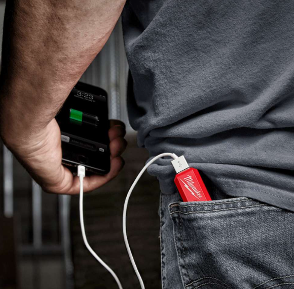 The REDLITHIUM USB Charger & Portable Power Source Kit includes a USB rechargeable power bank and charger, a 60cm heavy duty micro-USB cord, and one of our REDLITHIUM USB 3.0Ah batteries. The portable battery charger allows you to conveniently charge your mobile phone, tablet and wireless headphones both on and off the job site. You can check the charge of your REDLITHIUM USB battery pack with the LED Fuel Gauge. The portable battery pack can easily be recharged via Micro-USB cable from a wall plug or USB power source. Both the REDLITHIUM USB Battery and Portable Power Source and Charger are covered under our MILWAUKEE 2-year warranty.