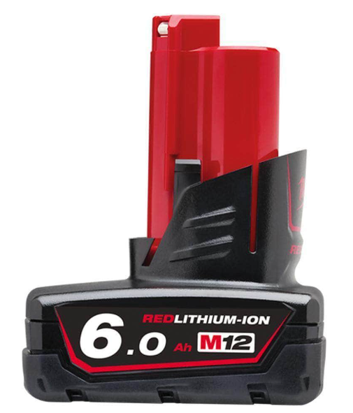 Delivers up to 3X more runtime, 20% more power and 2X more life than standard lithium-ion batteries.  The M12™ 6.0Ah REDLITHIUM-ION™ Battery features superior pack construction, electronics and performance to deliver more work per charge and more work over the life of the pack than any battery on the market. With Milwaukee durability built into each pack, this battery runs cooler and performs in climates below 0°F/-18°C.  Managed by Milwaukee’s exclusive REDLINK™ Intelligence, the battery features overload protection to prevent you from damaging your cordless power tools in heavy-duty situations, while the discharge protection prevents cell damage. The temperature management system and individual cell monitoring help maximize battery life. Upgrade to the M12™ 6.0Ah REDLITHIUM-ION™ Battery to instantly increase the runtime and durability of your Milwaukee M12 cordless tools.
