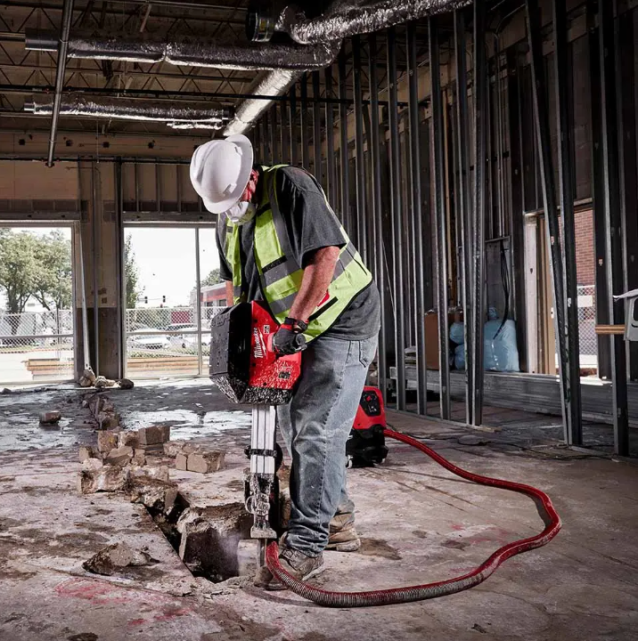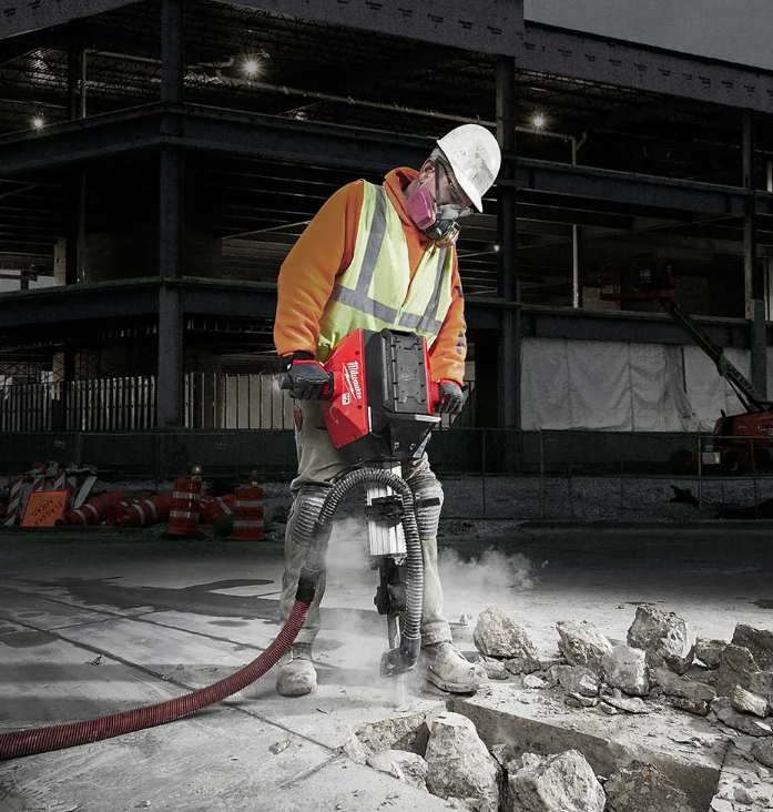 MX FUEL™, Milwaukee®’s new equipment system, goes beyond the limitations of petrol and corded units, utilizing the industry’s most advanced batteries, motors, and electronics to deliver the best experience for users. This is equipment, redefined. The MX FUEL™ Breaker delivers a fast, safe, and easy concrete demolition experience. 64 joules of blow energy and 1,300 bpm allow for maximum productivity. With a floating body design, the anti-vibration body limits excess vibration and provides users with a comfortable grip while operating. The Breaker features a front handle for easy transportation and maneuvering across the job site. The MX FUEL™ Breaker comes with two 28 mm hex chisels (1x flat, 1x pointed), while a Breaker Trolley is also available (sold separately). The MX FUEL™ Breaker is ONE-KEY™ compatible, allowing users to track and manage the tool. An unbelievably productive breaker, providing low vibration, lightweight and maximum productivity.