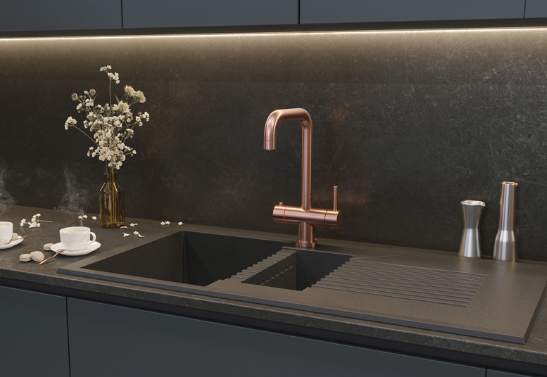 • Stylish, modern U spout design with a brushed copper finish