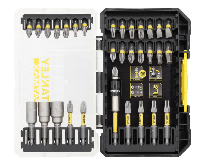 Connectable case allows multiple sets to be stacked and locked together. Compatible with the Pro-Stack Caddy (39322) to hold all accessory sets in one place. Easy screwdriver bit removal and retention for user convenience. Impact screwdriver bits with torsion zone for greater bit strength. Impact torsion holder increases the life of 25mm screwdriver bits.